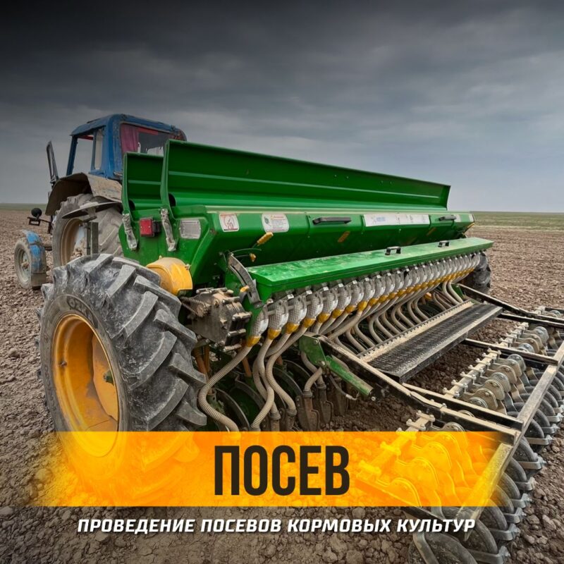 Посев 60 га люцерны на богаре и 72 га эспарцета и люцерны на орошении под зеленым покровом могара с внесением